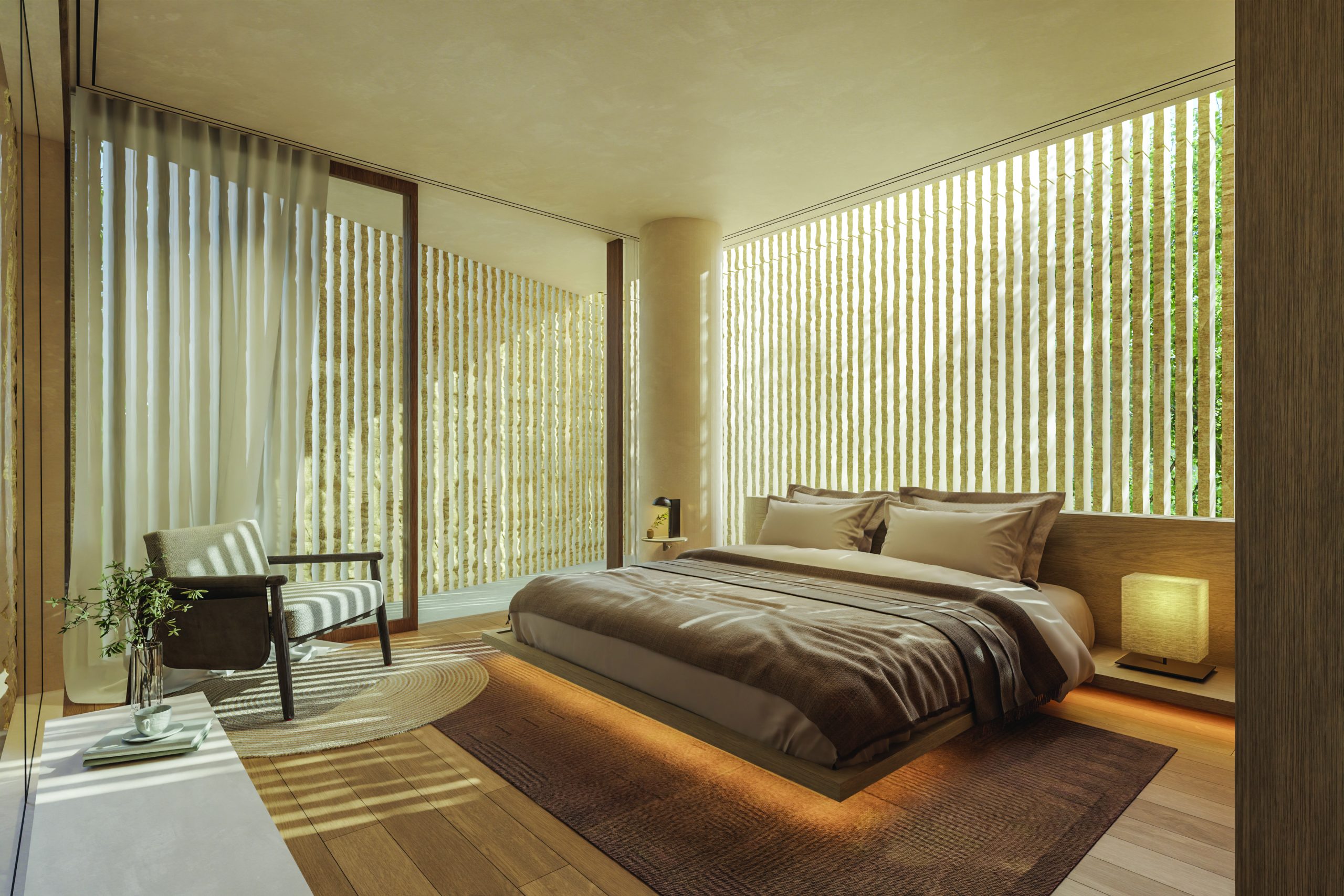 This boutique apartment complex combines resort-style comfort with functional design, centered around five wellness principles — Air, Water, Light, Nature, and Nourishment. Each residence is crafted for balance and simplicity, supported by sustainable systems such as a central water purification network and eco-conscious materials throughout.